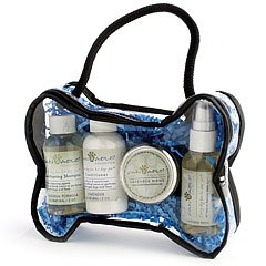 - Bone-shaped vinyl bag containing doggie essentials